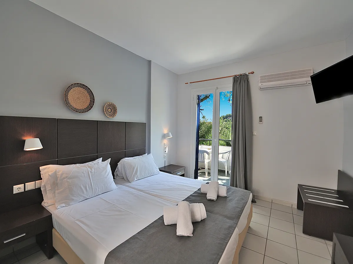 In den jaar 2022 en 2023 gerenoveerd, gezellig vakantiehotel. In het buitengedeelte, zwembad met zonneterras en poolbar. Ligbedden, kussens en parasols bij het zwembad. Badhanddoeken tegen betaling Receptie, tv-hoek, ontbijtruimte, WiFi in het gehele hotel.