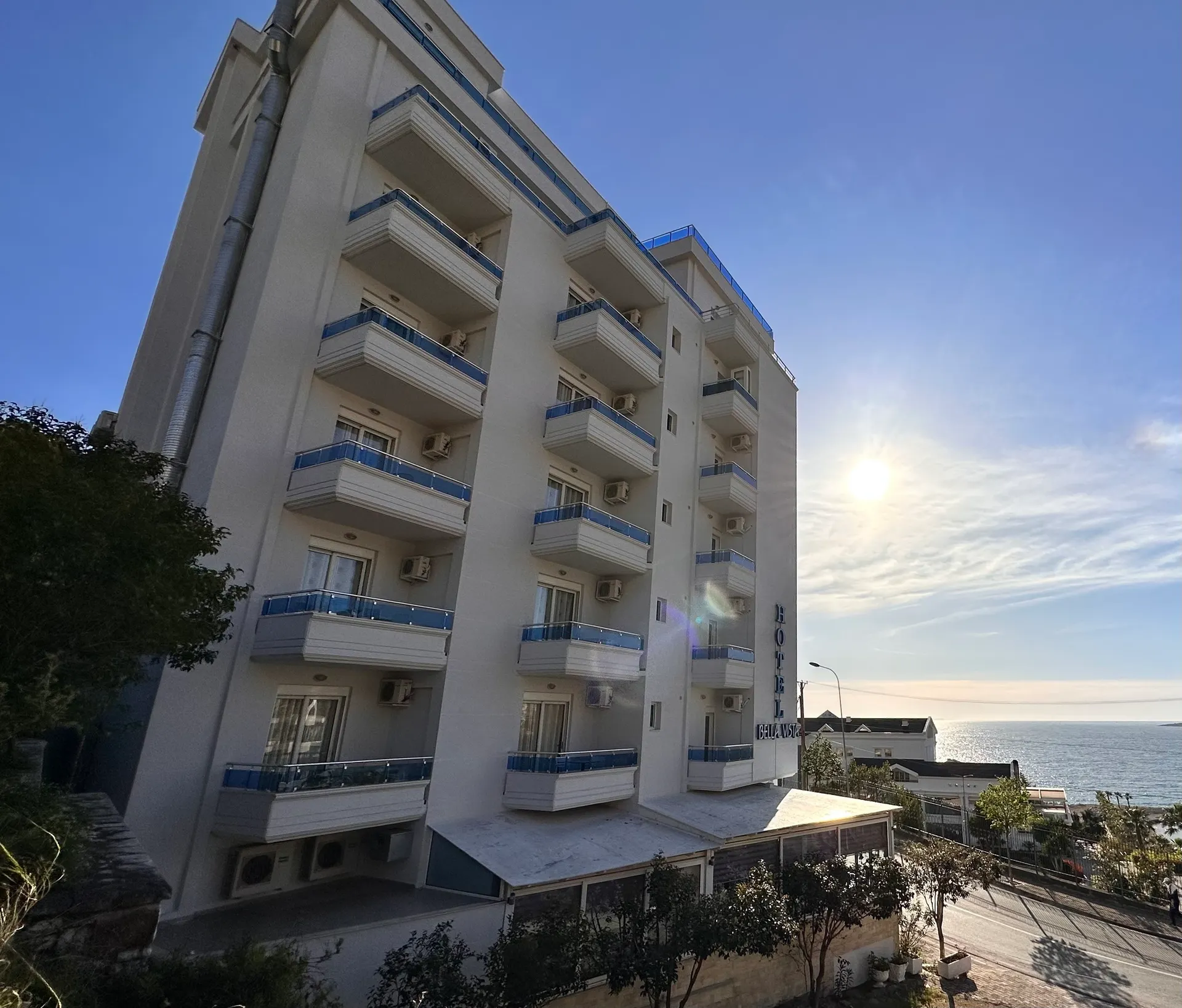 Algemene beschrijving:Dit 2e rij strandhotel Bella Vista Hotel, Sarande is gelegen ca. 200 m van het strand Sarande Beach. De stad Ksamil ligt op ongeveer 12 km afstand (Butrint ongeveer 14 km, Himare ongeveer 52 km). In de omgeving vindt u verschillene bars en restaurants (200 m), een supermarkt (1 km) en diverse winkels (3 km). Een discotheek bevindt zich in de buurt van het hotel. De volgende bezienswaardigheden zijn bereikbaar vanaf het hotel: Blue Eye (ca. 22 km), Lekuresi Castle (ca. 37 km) en Butrint National Park (ca. 14 km). Een bushalte (ca. 50 m) zorgt voor mobiliteit op vakantie. De luchthaven (TIA) is ongeveer 260 km van het hotel vandaan. Faciliteiten:Dit 7-verdiepingen tellende hotel is in 2025 gedeeltelijk gerenoveerd en beschikt over in totaal 36 kamers. Daarnaast beschikt het hotel ook over een receptie (check in vanaf 14:00 uur, uitchecken tot 11:00 uur). Sport/Activiteiten:Op ongeveer 300 m afstand worden verschillende watersporten aangeboden (deels door lokale aanbieders en tegen betaling). Aanvullende informatie:Het hotelpersoneel spreekt Engels. Geaccepteerde betalingsmiddelen: Euro/MasterCard.