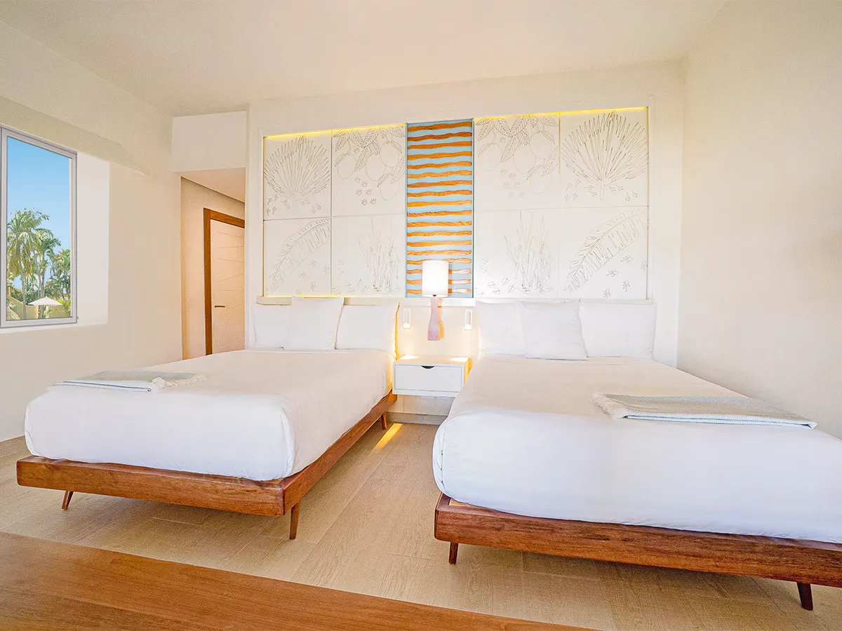 • Juniorsuites (JS, ca. 45 m²), woonruimte, airconditioning, plafondventilator, minibar (dagelijkse bevoorrading), koffiezetapparaat, tv, telefoon, WiFi, kluis. Bad/douche, toilet, haardroger. Balkon. Max. 2V+2K, juniorsuites voor alleengebruik te boeken (JSE)<br>Familie-suites (FZ, ca. 82 qm, vanaf dem 01.11.24) 2 aparte slaapkamers, aircon., plafondventilator, minibar (dagel. aanvulling), koffiezetapparaat, tv, telefoon, WiFi, kluis. <br>Extra Voorzieningen zoals privé check-in, 24-uur.-roomservice, ap. strandgedeelte met Bali-bedden en conciërge-service in de beachclub.