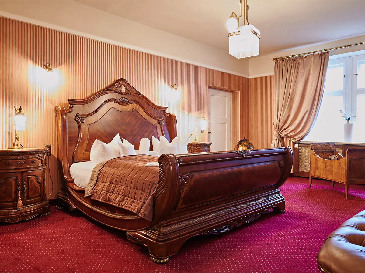- Tweepersoonskamer (DZ1, ca. 30 m²), tv, WiFi (inclusief), kluis, minibar. <br>Suite (SU2, ca. 75 m²), type Schlosssuite standaard, aparte slaapkamer, tv, WiFi (inclusief), kluis, koelkast. <br>Chalet (CH2, C2, ca. 80 m²), 2 aparte slaapkamers, tv, WiFi (inclusief), kluis, uitgeruste keuken. Terras/tuin.