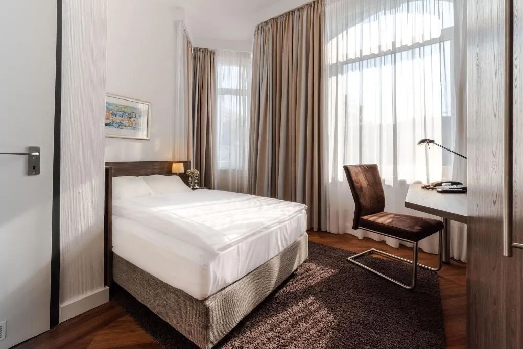 EEN HOTEL IN HET HART VAN MÜLHEIM BELEEF EEN STEDENTRIP OP EEN NIEUWE MANIER – GENIETEN EN LEVENSKUNST IN MÜLHEIM Op een toplocatie bieden we uitstekende verbindingen met Düsseldorf Airport, Messe Düsseldorf en Messe Essen/Grugahalle. Ons hotel, een smaakvol gerestaureerd juweel uit de Wilhelminische tijd rond 1895, verwelkomt u met klassieke meubels, warm lokaal hout en subtiele kleuren. De originele kunstwerken van diverse kunstenaars geven het gebouw een tijdloze, rustige charme. Begin uw dag in het groene paradijs van onze wintertuin met een heerlijk ontbijt en sluit deze ontspannen af in onze gezellige bar - een perfecte afsluiting van een enerverende dag.