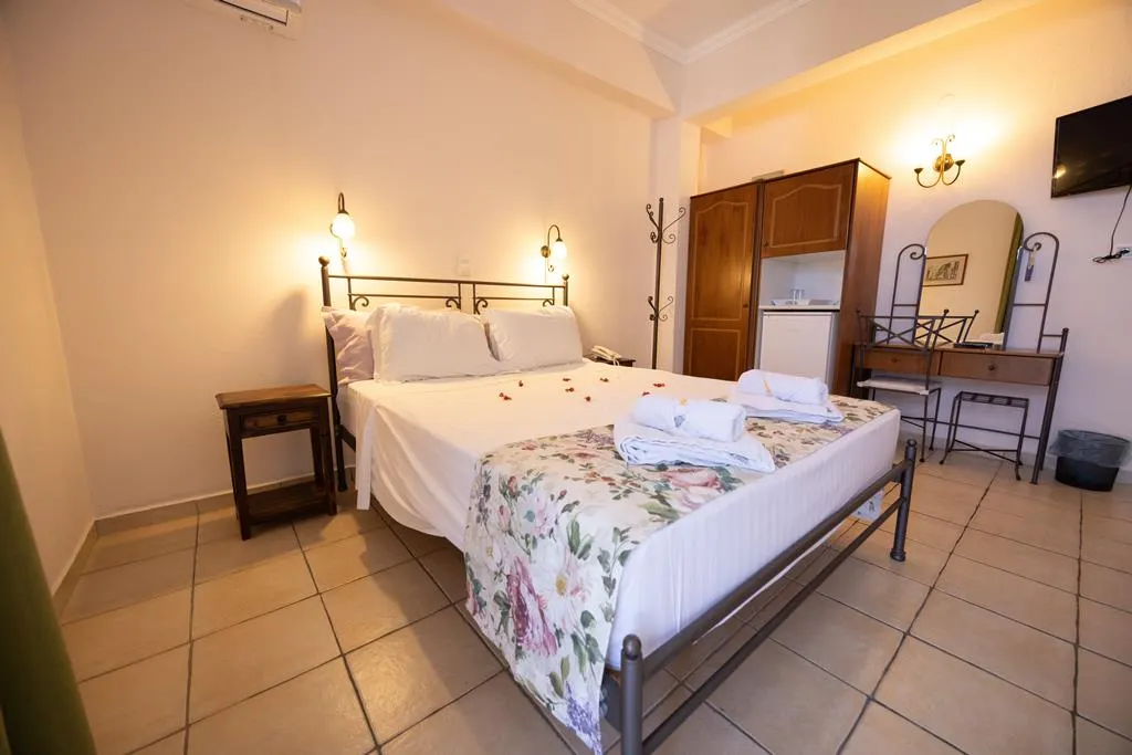 Dit hotel heeft door de hogere ligging een prachtig panoramisch uitzicht over zee. Het gezellige centrum van Agios Gordios vind je op loopafstand. Dit dorpje ligt aan één van de mooiste baaien van het eiland en heeft een gezellige hoofdstraat met diverse winkeltjes, tavernes en terrassen. De hoofdstraat eindigt bij het langgerekte zandstrand. De verzorgde kamers van dit hotel zijn met oog voor detail ingericht. Dit alles, samen met de Griekse vriendelijkheid en de persoonlijke service maken dit hotel tot een ideale plek om te genieten van je vakantie.