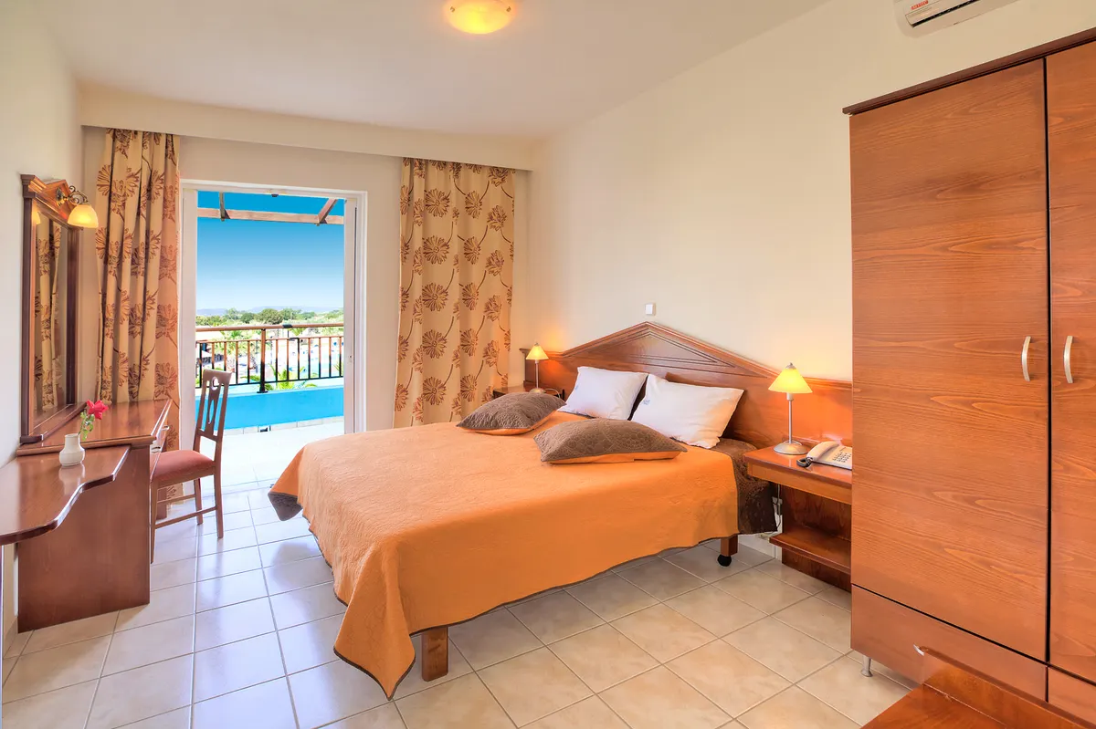 - Tweepersoonskamer (DZ, ca. 20 m²), airconditioning, koelkast, tv, WiFi, huurkluis. Bad/douche, toilet, haardroger. Balkon/terras met tuinzicht. Naar keuze met zwembadzicht (DZP). Max. 2V+1K, DZ voor alleengebruik te boeken (EZ)<br>Familiekamer (FZ, ca. 30 m²) gecomb. woon-/slaapkamer, ap. slaapkamer, airconditioning, koelkast, tv, WiFi, huurkluis. Bad/douche, toilet, haardroger. Balkon/terras met tuinzicht. Max. 3V, naar keuze met uitzicht op het zwembad (FZP)<br>Familiekamer app. type B (APB, ca. 50 m²) gecomb. woon-/slaapkamer, ap. slaapkamer, airconditioning, koelkast, tv, WiFi, huurkluis. Bad/douche, toilet, haardroger. Balkon/terras met tuinzicht. Max. 4V, naar keuze met zwembadzicht te boeken (app)