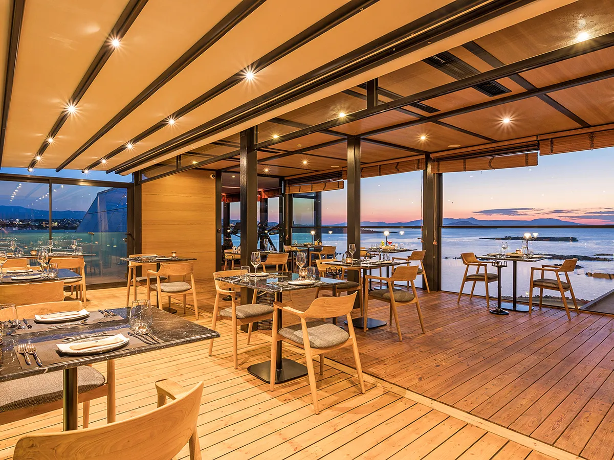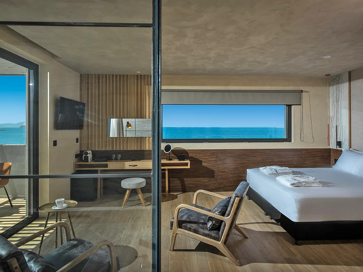 - Klein, luxe op volwassenen georiënteerd boetiekhotel, zit- en zonneterras op de bovenste verdieping, strand met gratis ligstoelen, hotellobby met receptie, WiFi, lobbybar, parkeerservice, bagageruimte. Restaurant, à-la-carte restaurant op de bovenste verdieping met panorama-uitzicht. 5 sterren, 34 kamers.