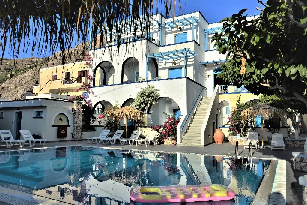 Dit charmante hotel, gebouwd in traditionele Griekse stijl, is prachtig gelegen in een rustige en afgelegen omgeving, omgeven door vegetatie buiten Kamari, en ligt op loopafstand van een van de meest beroemde zwarte zandstranden van het eiland. Fira is met de auto te bereiken, aangezien het op ongeveer 9 km afstand ligt en de luchthaven op ongeveer 5 km van het hotel. Als gasten op zoek zijn naar een plek om er echt even helemaal tussenuit te zijn, dan is dit de plek.