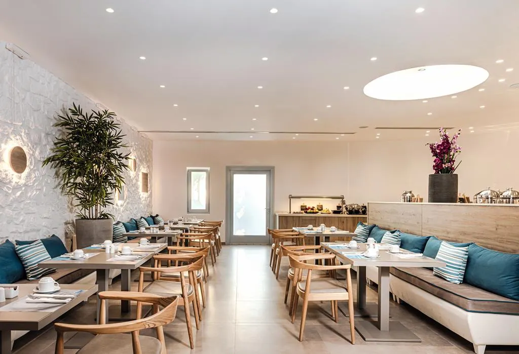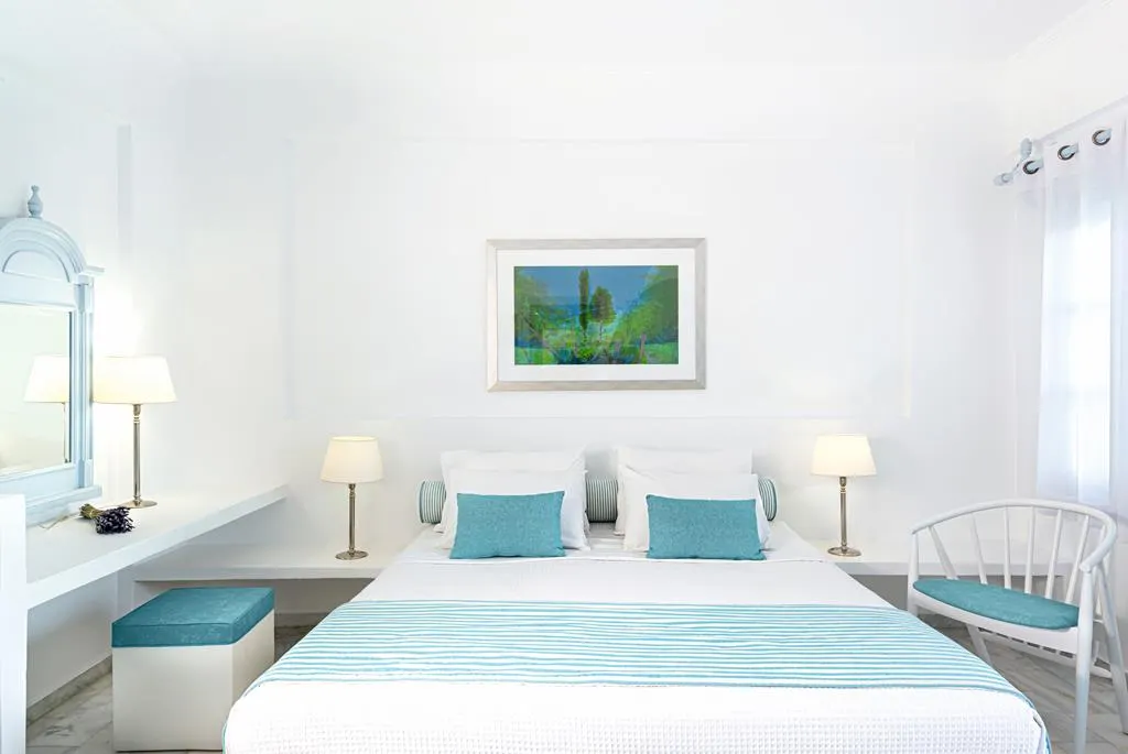 Aan de voet van Ancient Thera en vlak bij het zwarte zandstrand ligt dit luxe 5-sterrenresort. Geniet van vier zwembaden, een spa, een restaurant aan het zwembad en een verlichte tennisbaan voor een avondpotje. Het resort ademt de charme van een Cycladisch dorp, met witgekalkte muren en sierlijke bogen die de typische sfeer van Santorini uitstralen. Hier combineer je de lokale charme met moderne luxe en persoonlijke service. Het dorp zelf is een juweeltje, met zijn unieke zwarte strand en een gezellige boulevard vol winkels, tavernes en sfeervolle restaurants.