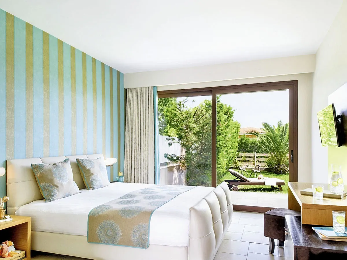 - Juniorsuite (JS, ca. 32 m²), airconditioning, minibar, WiFi, tv, kluis. Douche, toilet, haardroger. Balkon/terras met tuinzicht. Naar keuze met zeezicht (JSM). Max. 2V <br>Juniorsuite (JSP, ca. 32 m²), airconditioning, minibar, WiFi, tv, kluis. Douche, toilet, haardroger. Terras met uitzicht op de tuin en privé zwembad. Naar keuze met zeezicht (JPM). Max. 2V <br>Maisonnettekamer (MA, ca. 50 m²) op 2 verdiepingen, luxe inrichting, open slaapruimte, airconditioning, minibar, koffie-/theezetapparaat, WiFi, tv, kluis, jacuzzi-bad, toilet, haardroger, badjas, slippers. Balkon met zeezicht en terras naar het privé zwembad. Max. 2V