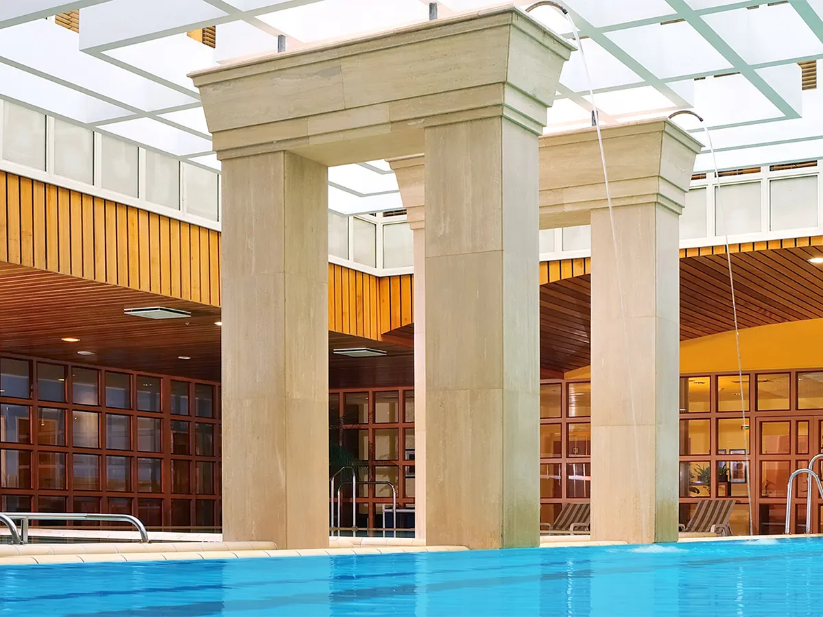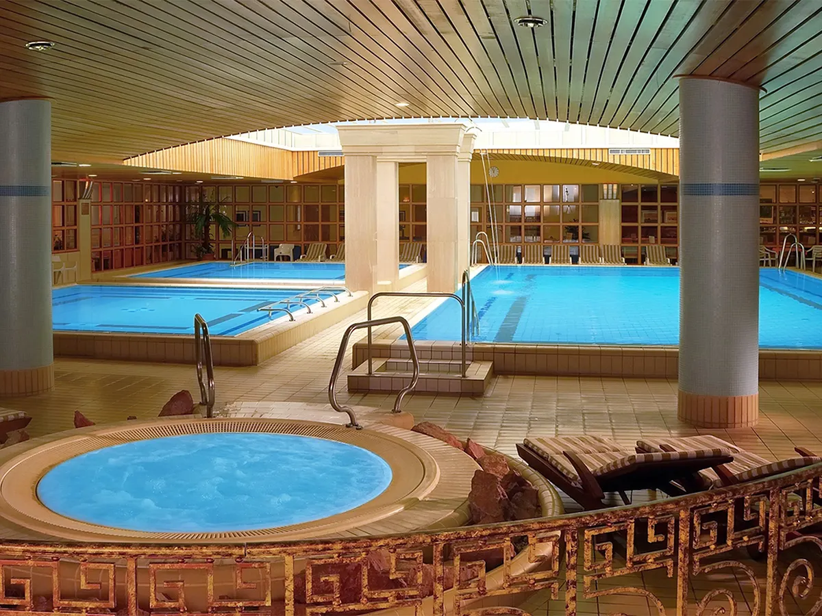 - Wellnessruimte (ca. 1.630 qm) met binnenbad, thermaal zwembad, whirlpool, Finse sauna, infraroodcabine, stoombad