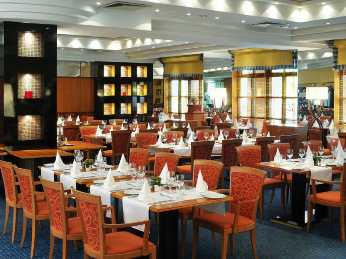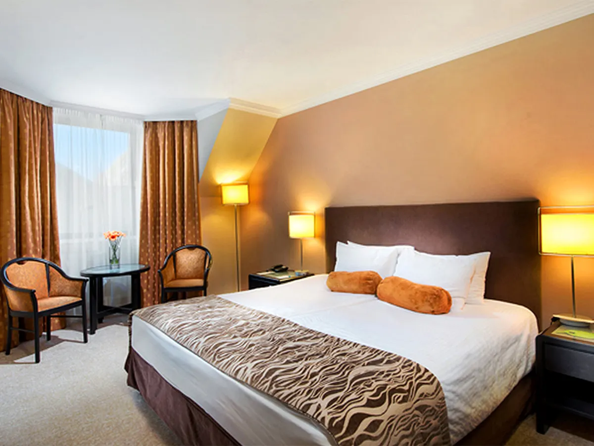 - Stadshotel met receptie, WiFi (inclusief), ontbijtruimte, bar, terras. 4 sterren, 4 verdiepingen, 310 kamers, lift.