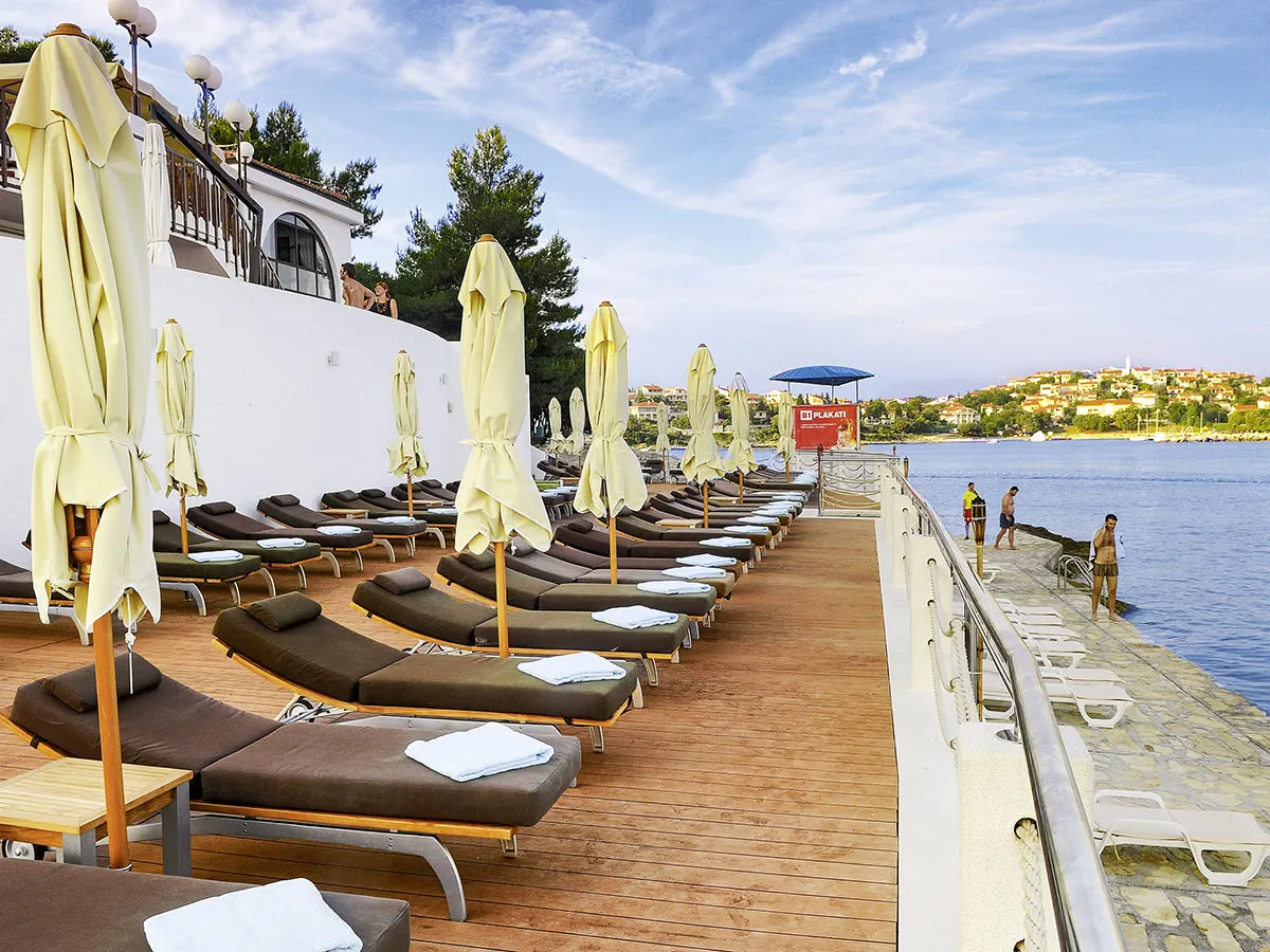 - Hoofdgebouw "Histria" en bijgebouw "Marina Wing", receptie, wifi (incl.), restaurant met terras, bar. In de goed onderhouden buitengedeelte is er een zoutwaterzwembad met een terras (ligbedden, parasols inbegrepen) en een poolbar. Op het strand, ligbedden en parasols tegen betaling Het strandrestaurant ( à-la-carte). Parkeerplaatsen tegen bet. landscategorie: 4 sterren,<br>368 kamers, 4 verdiepingen, lift.
