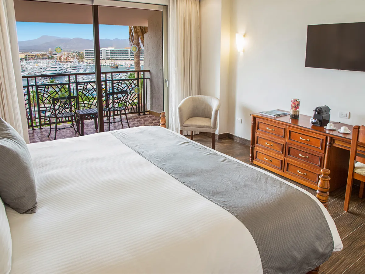 - Juniorsuite (JS, ca. 46 m²), airconditioning, minibar, koffie-/theezetapparaat, waterdispenser, tv, telefoon, WiFi, kluis. Douche, bad, toilet, haardroger. Terras/balkon. Max. 2V+3K, naar keuze met zeezicht te boeken (JSM)<br>Jachthaven-Bay-view (JSH, ca. 34 m²), airconditioning, minibar, koffie-/theezetapparaat, waterdispenser, TV, telefoon, WiFi, kluis. Douche, toilet, haardroger. Terras/balkon met toegang naar het gemeenschappelijk VIP-zwembad en uitzicht op de jachthaven. Max. 2V+1K<br>Elk voor alleengebruik te boeken (JSE, JME, JHE) <br>Finisterra-juniorsuite (JSF, ca. 46 m²), airconditioning, minibar, koffie-/theezetapparaat, waterdispenser, tv, telefoon, WiFi, kluis. Douche, toilet, haardroger, jacuzzi. Terras/balkon met uitzicht op de jachthaven/baai en exclusieve toegang tot het VIP-zwembad op het pittoreske klif. Max. 2V+2K