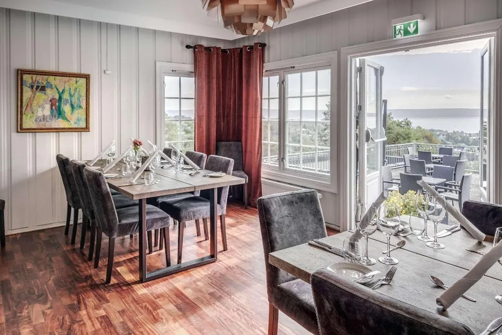 Dit hotel ligt op een heuvel in Asker met een panoramisch uitzicht over de Oslofjord, te midden van bossen en appelboomgaarden. Het biedt een rustige landelijke omgeving op slechts 1, 7 km van het centrum van Asker. Gasten kunnen elke ochtend genieten van een gratis ontbijtbuffet en in het restaurant van het hotel kunt u ook lunchen en dineren. De accommodatie beschikt over een fitnessruimte, een tuin en een terras waar u kunt ontspannen. Alle kamers zijn voorzien van wifi en sommige kamers bieden uitzicht op de fjord. Whale Beach, een bestemming voor leuke uitstapjes, ligt op 2, 4 km (1, 5 mijl) afstand.