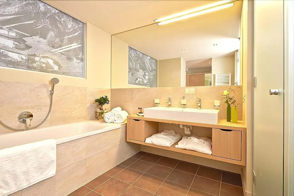 Gasten van Alpeiner Nature Resort Tirol kunnen genieten van een deugddoende maaltijd in het restaurant. Bestel je favoriete drankje in een bar/lounge.