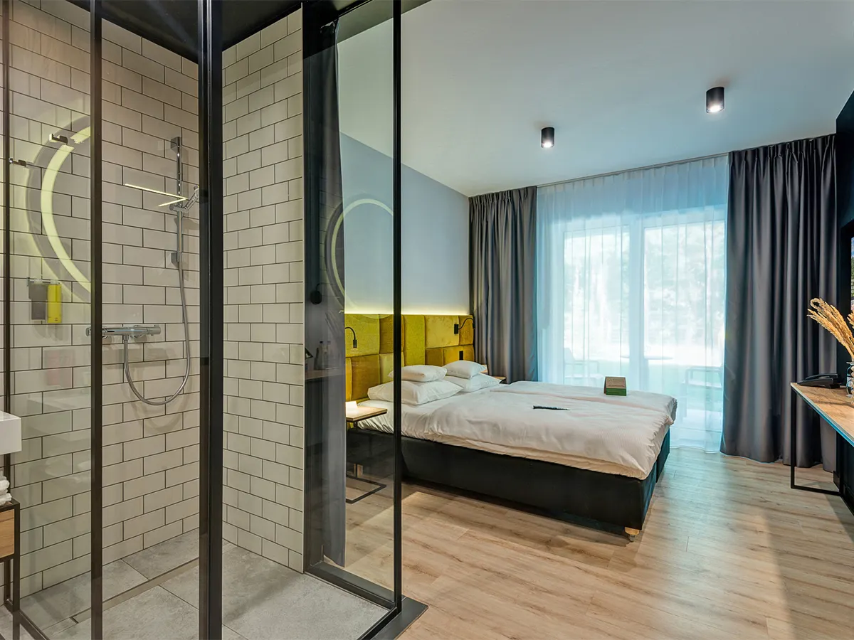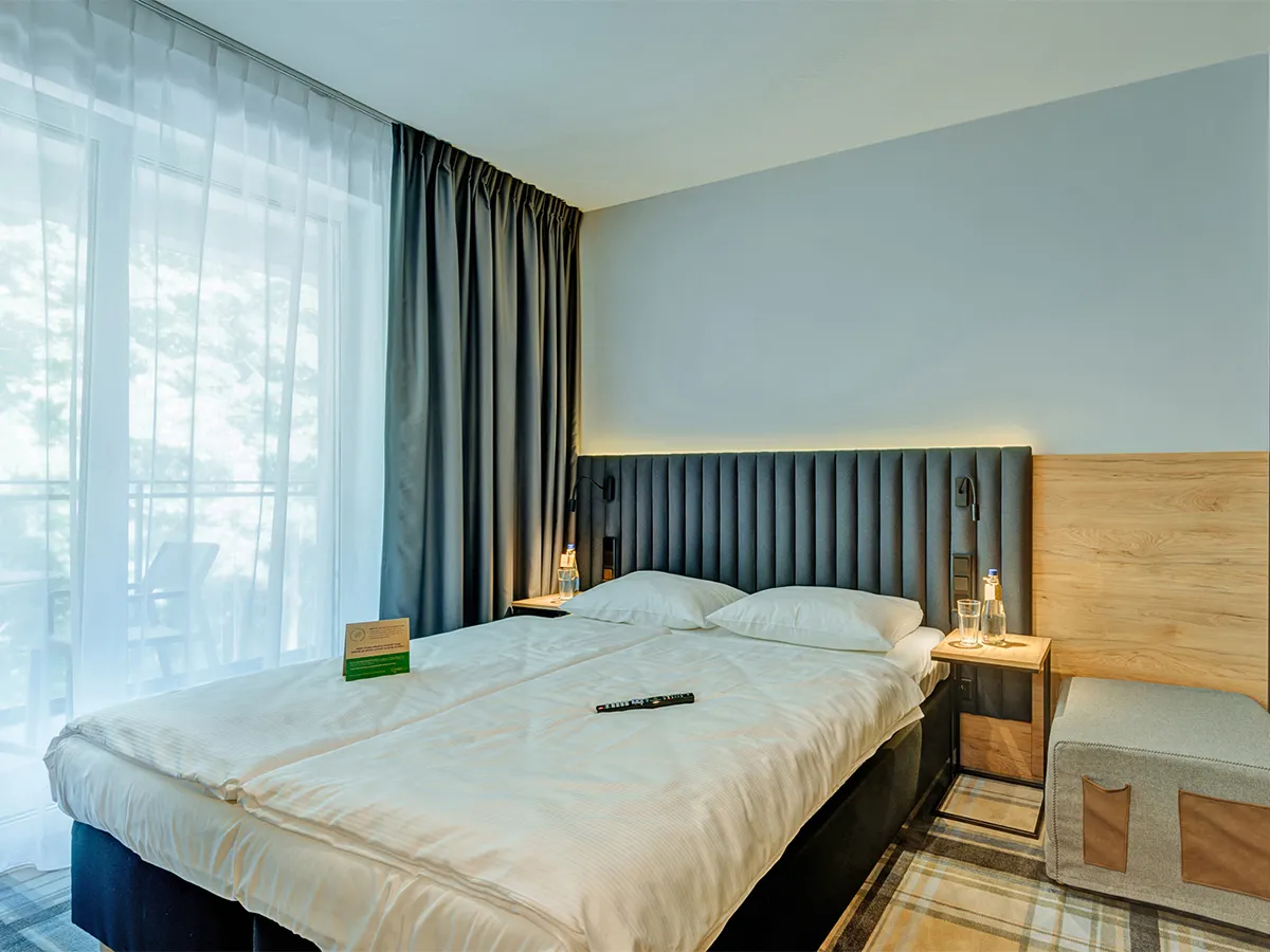 - Superior-kamer (DZ, ca. 20 m²), tweepersoonsbed, airconditioning, tv, kluis, koelkast of minibar, koffie-/theezetapparaat. Max.2V+1K<br>Penthouse suite (PEN, ca. 30 m²), woonkamer met slaapbank, open slaapkamer op de bovenste verdieping, verder gelijke inrichting. <br>Appartement (SUK, ca. 35 m²), aparte slaapkamer, woonkamer met slaapbank en kitchenette, airconditioning, tv, kluis.