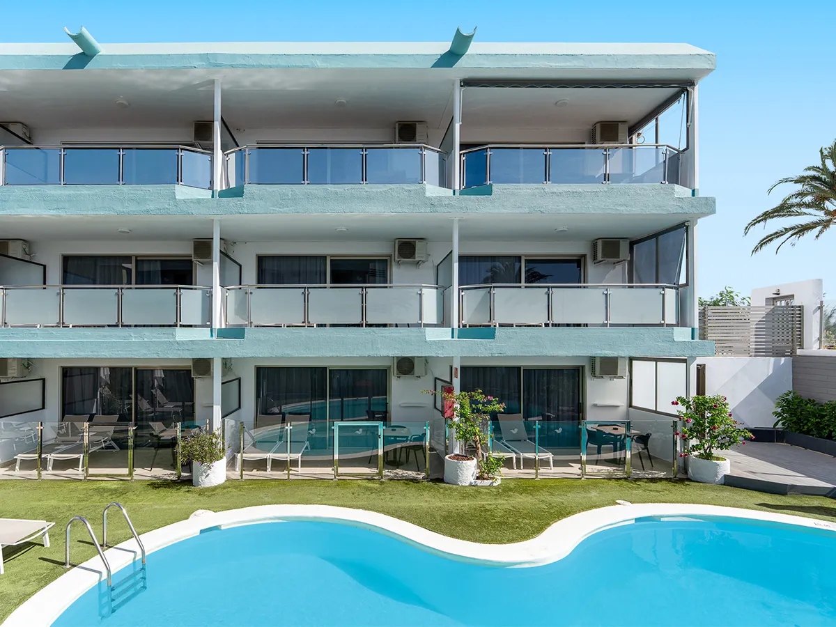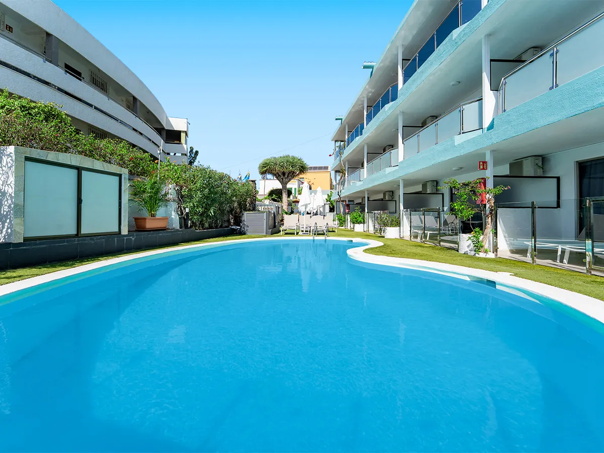 - Klein appartementencomplex met zwembad, whirlpool, zonneterras, ligbedden en parasols. Landcategorie: 2 sterren.