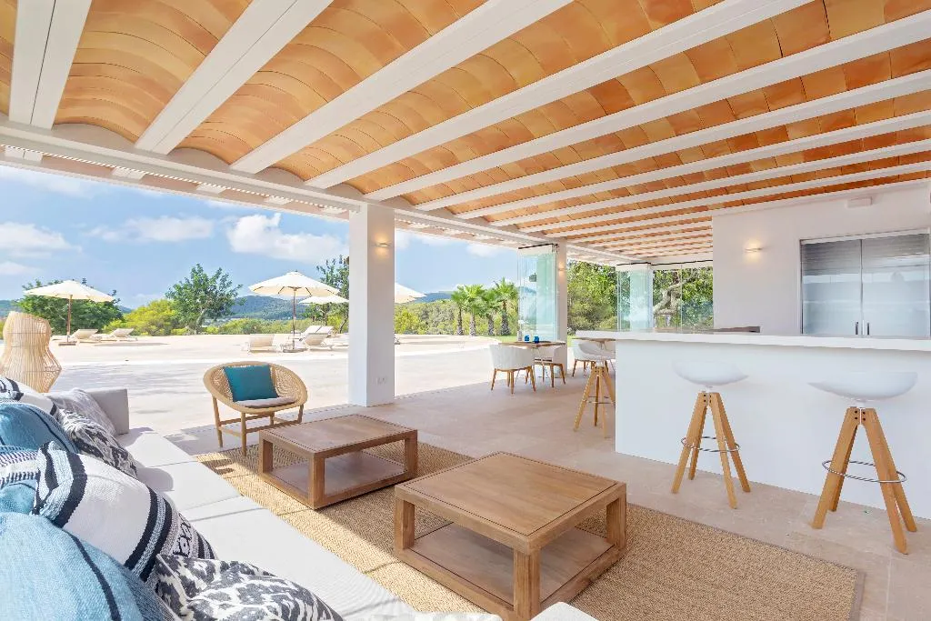 Can Toni Xumeu, een prachtig agriturismo landgoed in Cala Llonga op Ibiza, biedt luxueuze accommodatie te midden van meer dan 160. 000 vierkante meter landbouwgrond, boomgaarden en dennenbossen. Oorspronkelijk een boerderij uit 1859, beschikt het landgoed over gerenoveerde junior suites en één suite, een charmante bar-restaurant en een groot zwembad met adembenemend uitzicht. Gasten kunnen genieten van privéparkeergelegenheid, wandelpaden op het terrein die naar historische kalkovens leiden en prachtige tuinen met uitzicht op de nabijgelegen stranden van Cala Llonga en Salt d'en Serra. Gelegen op 11 km van Ibiza-stad, 6 km van Santa Eulalia en 2, 5 km van Ibiza Golf, waar gasten toegang hebben, is Can Toni Xumeu ideaal voor volwassen reizigers die op zoek zijn naar rust en natuurlijke schoonheid.