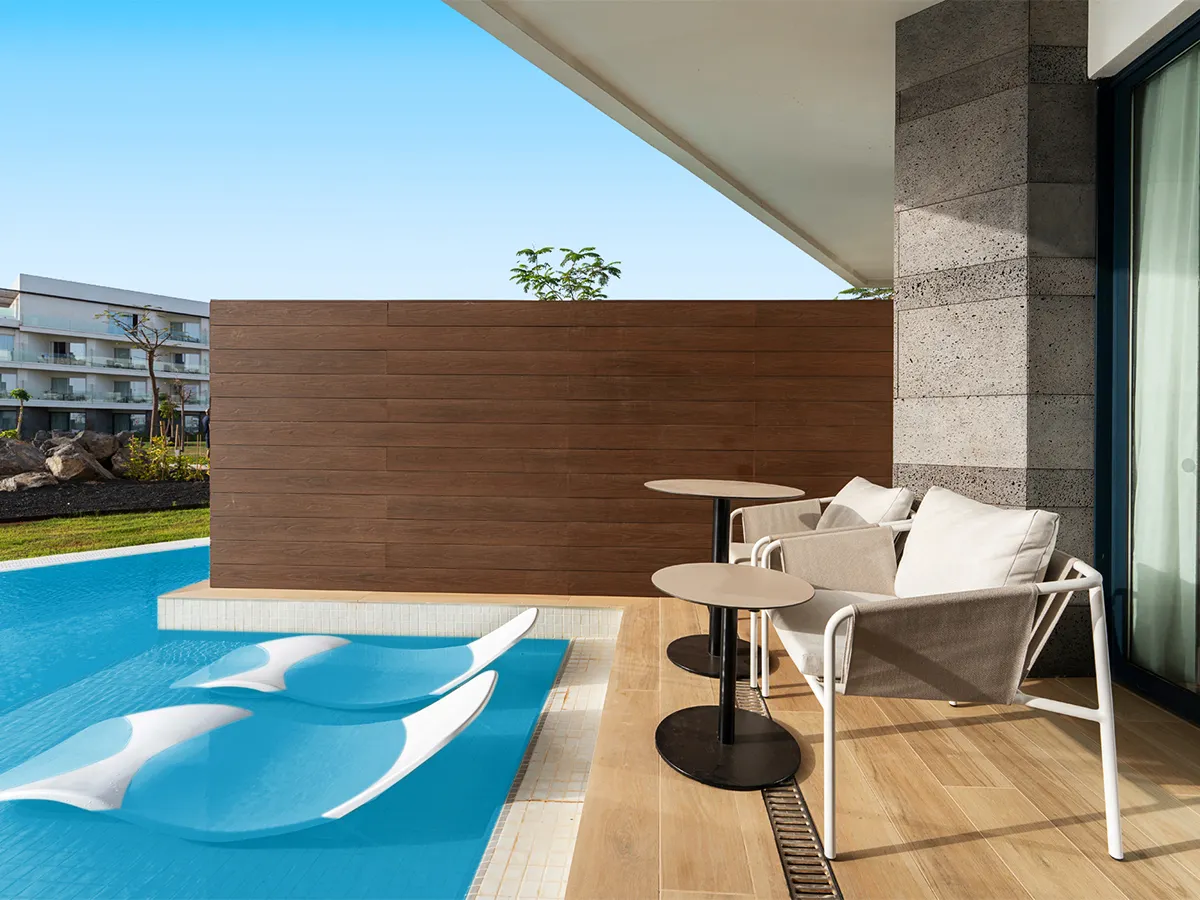 - Tweepersoonskamer (DSP, ca. 30 m², superior), airconditioning, WiFi, tv, kluis, minibar (tegen bet.). DOUCHV/toilet, haardroger. Balkon/terras, max. 2V+2K, naar keuze met zeezicht (DAM, front-zeezicht) o. zijdel. zeezicht (DSM). Max. 3v+1k. Elk voor alleengebruik te boeken (ESP/EZM)<br>Juniorsuite (JS, ca. 37 m²), airconditioning, WiFi, telefoon, tv, kluis incl., minibar (tegen betaling). Douche/toilet, haardroger. Balkon/terras. Max. 2V+2K<br>Tweepersoonskamer (DSW, ca. 30 m², swim-up, adults-Only vanaf 13 j.), airconditioning, WiFi, tel., tv, kluis incl., minibar (tegen bet.). Douche/toilet, haardroger. Terras met toegang tot het zwembad. Max. 2V, te boeken voor alleengebruik (ESM)