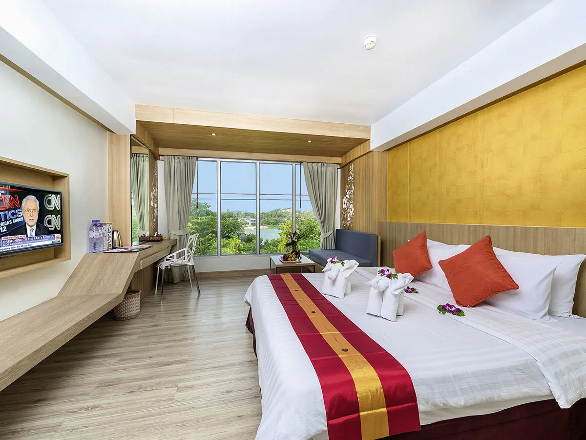 - Modern ontworpen hotelcomplex bestaande uit twee gebouwen van 4 verdiepingen aan weerszijden van de weg die door de populaire badplaats Chaweng loopt. Lake-Building in het bijgebouw beschikt over 32 kamer, het Ocean-Building direct aan zee heeft 61 kamers. 2 zwembaden, apart kinderzwembad, pool-/snackbar, strandbar, zonneterras, ligbedden, parasols. Receptie, restaurant, à-la-carte-restaurant, café. Landcategorie: 3 sterren, 93 kamers.