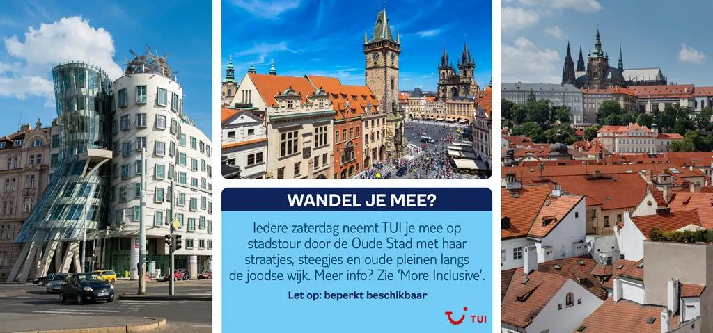 Wie op zaterdag met TUI in Praag is en de stad écht wil leren kennen, sluit aan bij onze twee uur durende stadswandeling. TUI trakteert! De wandeling begint elke zaterdag om 15:00 uur. Samen met onze Nederlandse gids struin je door de Oude stad met haar straatjes, steegjes en oude pleinen langs de Joodse wijk. En Praag zou Praag niet zijn zonder een pivo te drinken of een heerlijke Tsjechische wijn. Na zdravi, proost! Als je je stedentrip naar Praag boekt, krijg je bij stap 2 in het boekingsproces de mogelijkheid om deze stadswandeling te reserveren. Er zijn maar een beperkt aantal plaatsen beschikbaar. Krijg je tijdens het boeken geen optie om de tour te selecteren, dan zit deze helaas vol.