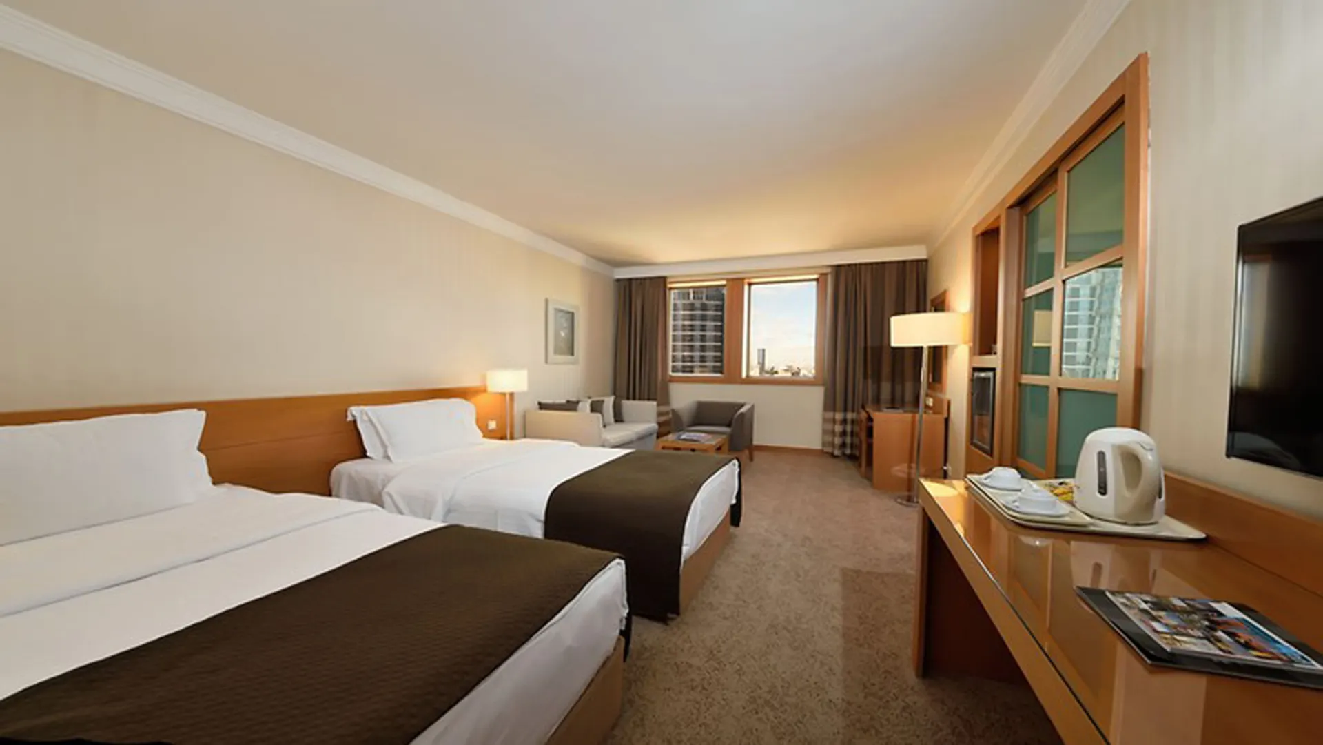 Algemene beschrijving:Het stadshotel Mercure Istanbul The Plaza Bosphorus bevindt zich op ca. 141 km van Bursa. Een supermarkt en andere winkels zijn na ca. 1 km bereikbaar. In de omgeving vindt u verschillene bars en restaurants (2 km) en een disco (2 km). Andere uitgaansmogelijkheden zoals een bioscoop bevinden zich op ongeveer 1 km afstand. Een autoverhuur service, een taxistandplaats (ca. 50 m) evenals een bushalte (ca. 300 m) zorgen voor mobiliteit op vakantie. De luchthaven (SAW) is ongeveer 45 km van het hotel vandaan. Er is een pendeldienst tussen het hotel en de luchthaven (tegen betaling). Een andere luchthaven (IST) ligt op ongeveer 56 km afstand. Faciliteiten:Dit 5-sterren hotel heeft in totaal 240 kamers. Daarnaast beschikt het hotel ook over een receptie (check in vanaf 14:00 uur, uitchecken tot 12:00 uur), een lobby, een lift, airconditioning, een kluisje (eventueel tegen betaling), een parkeerplaats (eventueel tegen betaling), een Security Entry System evenals een wisselkantoor. De hotelgasten kunnen gratis gebruik maken van Wifi. Daarnaast beschikt de accommodatie over 18 conferentieruimtes met internettoegang. Schoonmaak en medische service inclusief. Kamerservice en wasser-/strijkservice tegen betaling. Conciërgeservice mogelijk tegen betaling. Zwembad:Hier zijn ligstoelen evt. tegen betaling beschikbaar. Verzorging:Ontbijt in buffetvorm. Sport/Activiteiten:Sport- en entertainment aanbiedingen: fitness. Wellness: sauna en haman (inclusief). Spa ruimte met whirlpool en massages tegen betaling. Kinderopvang: babysit service (tegen betaling). Aanvullende informatie:Voor bepaalde faciliteiten, voorzieningen of activiteiten kunnen extra kosten in rekening worden gebracht. Sommige diensten zijn afhankelijk van de plaatselijke klimatologische omstandigheden en van het seizoen. Het hotelpersoneel spreekt Engels en Turks. Geaccepteerde betalingsmiddelen: Euro/MasterCard en Visa.