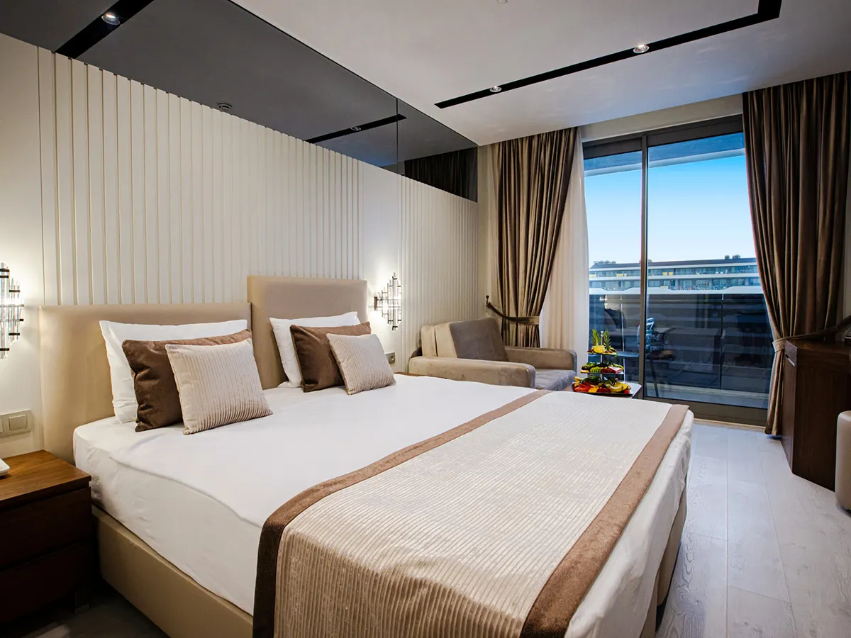- Tweepersoonskamer (DZ, ca. 26 m²), airconditioning, tv, telefoon, WiFi (teg. betaling), minibar, huurkluis. <br>Tweepersoonskamer Large (DZL, ca. 33 m²), airconditioning, tv, telefoon, WiFi (teg. betaling), minibar, huurkluis. <br>Familiekamer (FZ, ca. 38 m²), aparte slaapkamer, airconditioning, tv, telefoon, WiFi (teg. betaling), minibar, huurkluis. Min. 2V+3K/Max. 3V+2K, naar keuze met toegang tot het zwembad (FZS). <br>Familiekamer Large (FZL, ca. 38 m²), aparte slaapkamer, airconditioning, tv, telefoon, WiFi (teg. betaling), minibar, huurkluis. 5 V